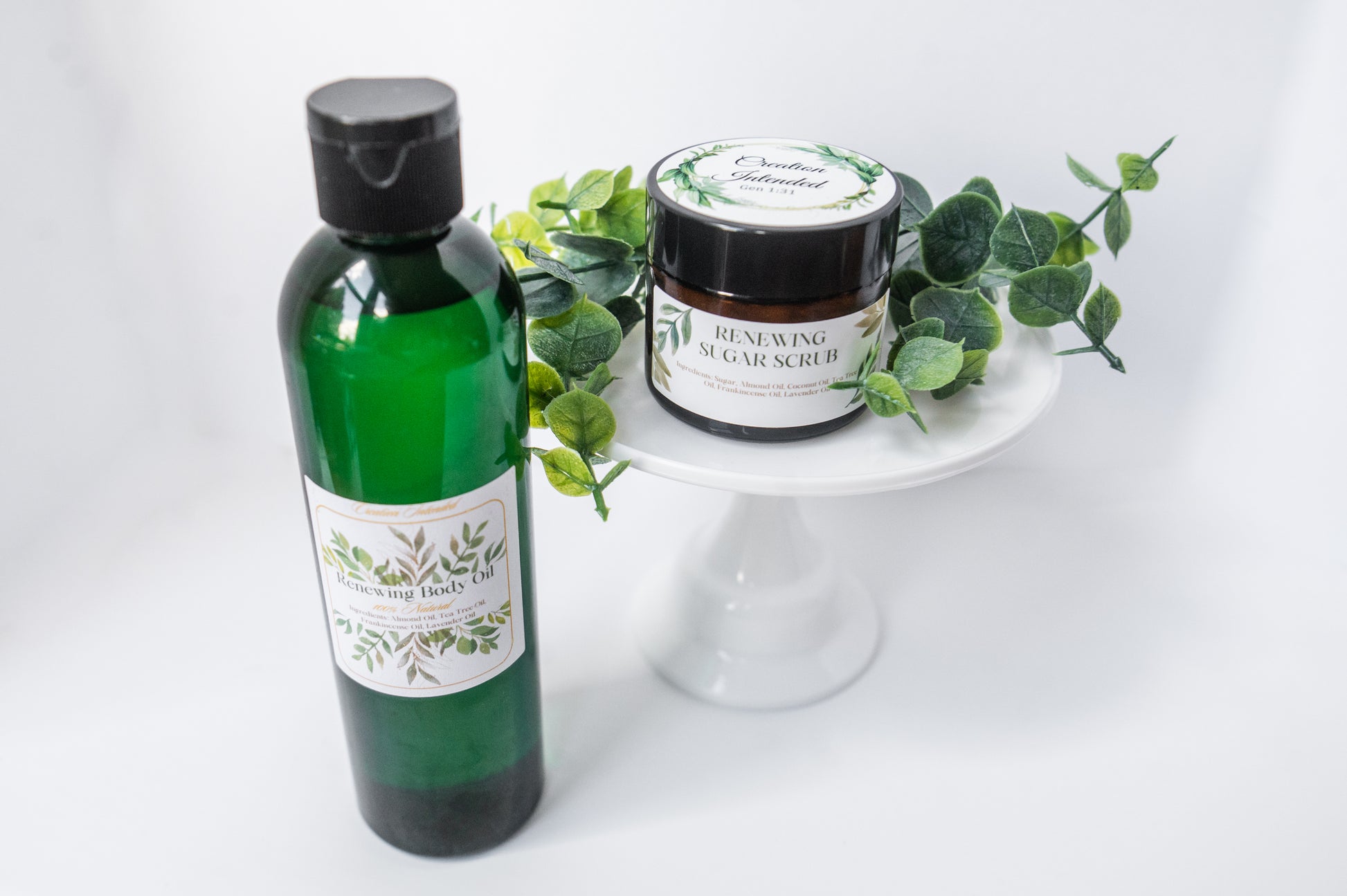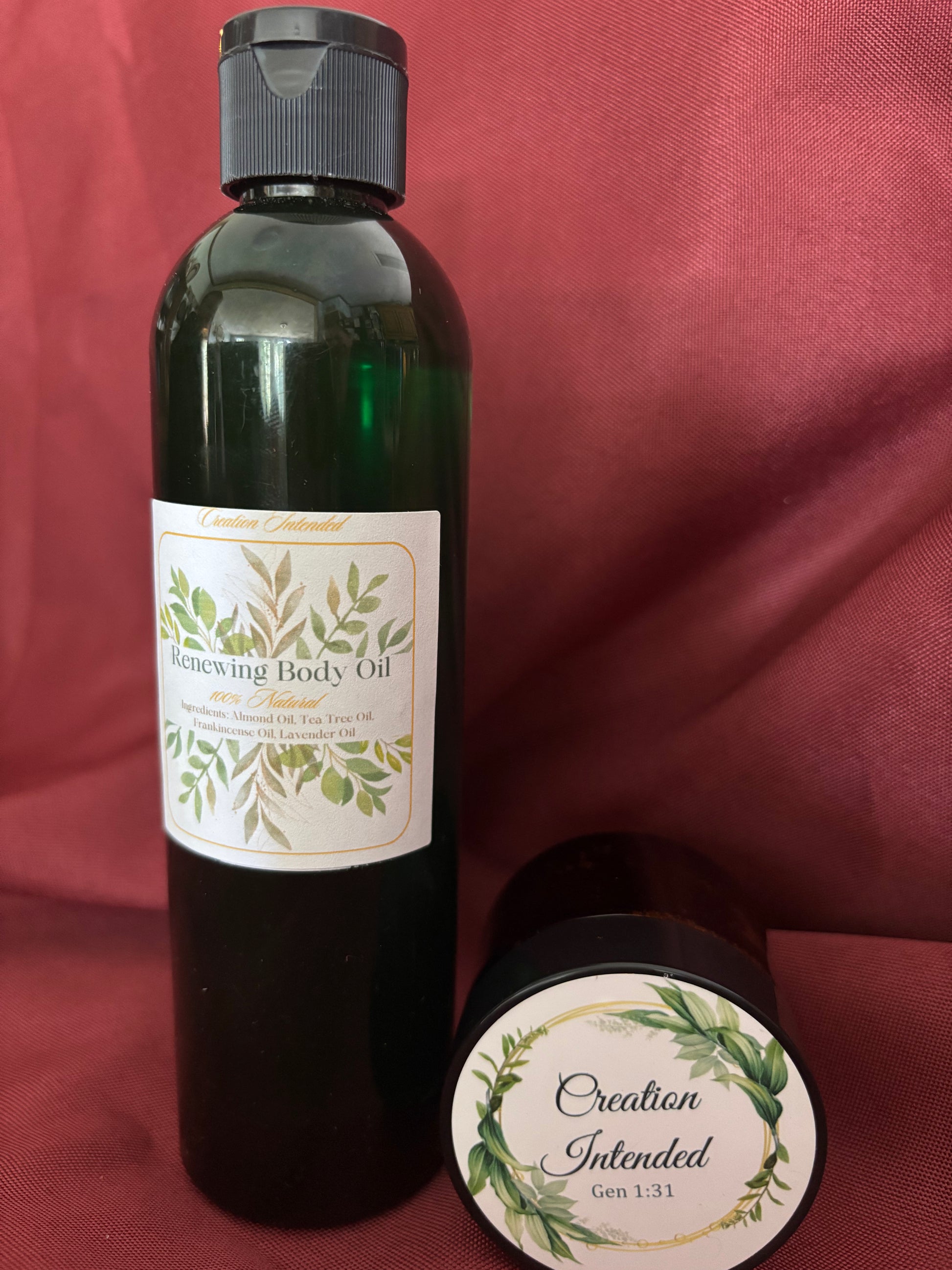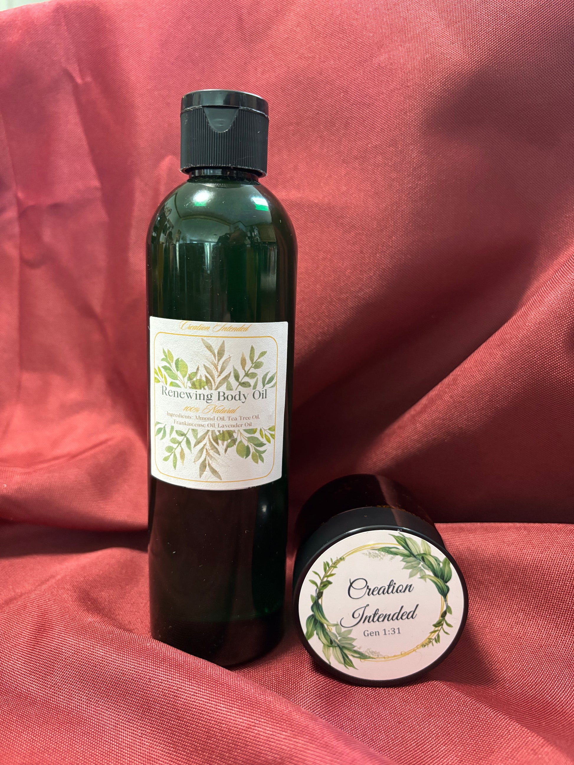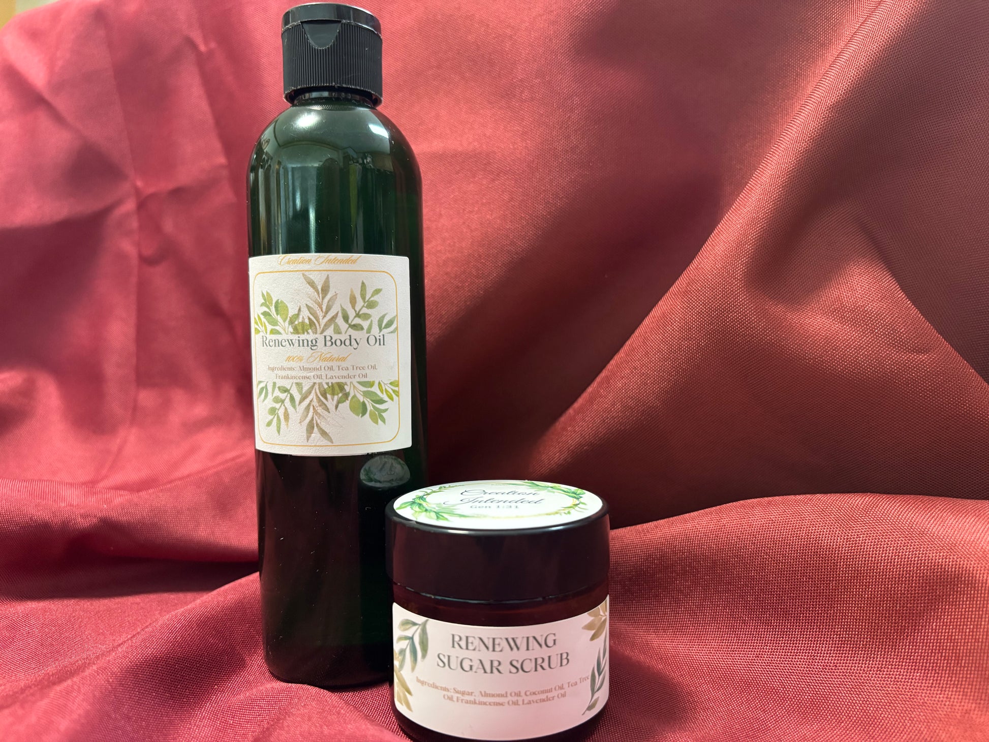 This powerful duo is better together! Now you can get our 8oz body oil AND a 2oz jar of our Renewing Sugar Scrub. Who says you can't have it all?