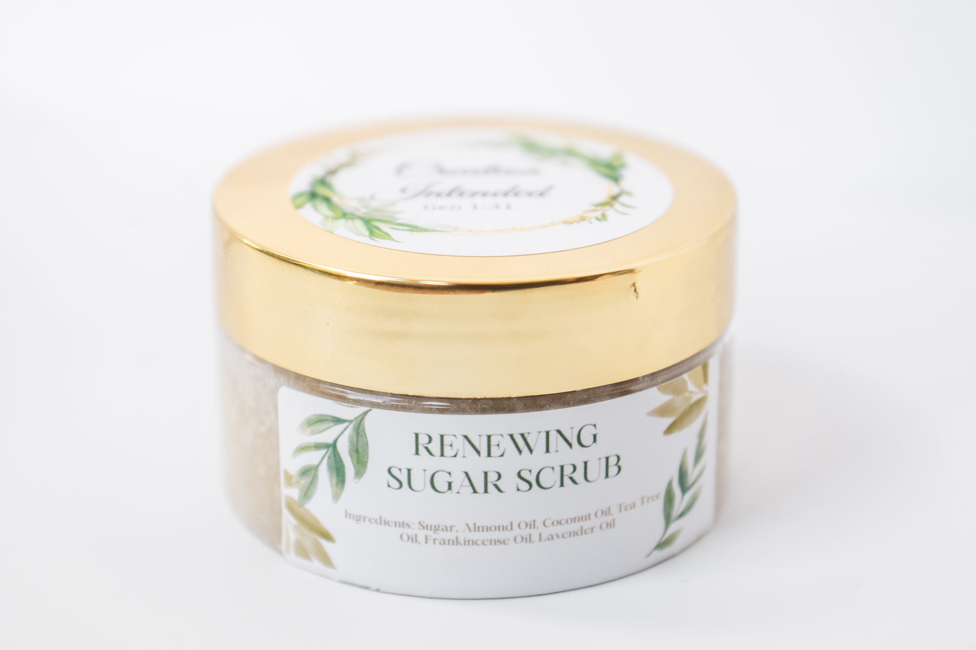 Let our sugar scrub make you feel brand new again! This is a great way to free and heal ingrown hairs, exfoliate, and clear most minor skin irritations. Just apply a small amount after washing, rub into the desired area, and rinse! For the best results, we recommend following up with our Renewing Body Oil. This system uses frankincense, tea tree, and lavender to soothe tired or irritated skin, leaving you feeling polished and renewed!